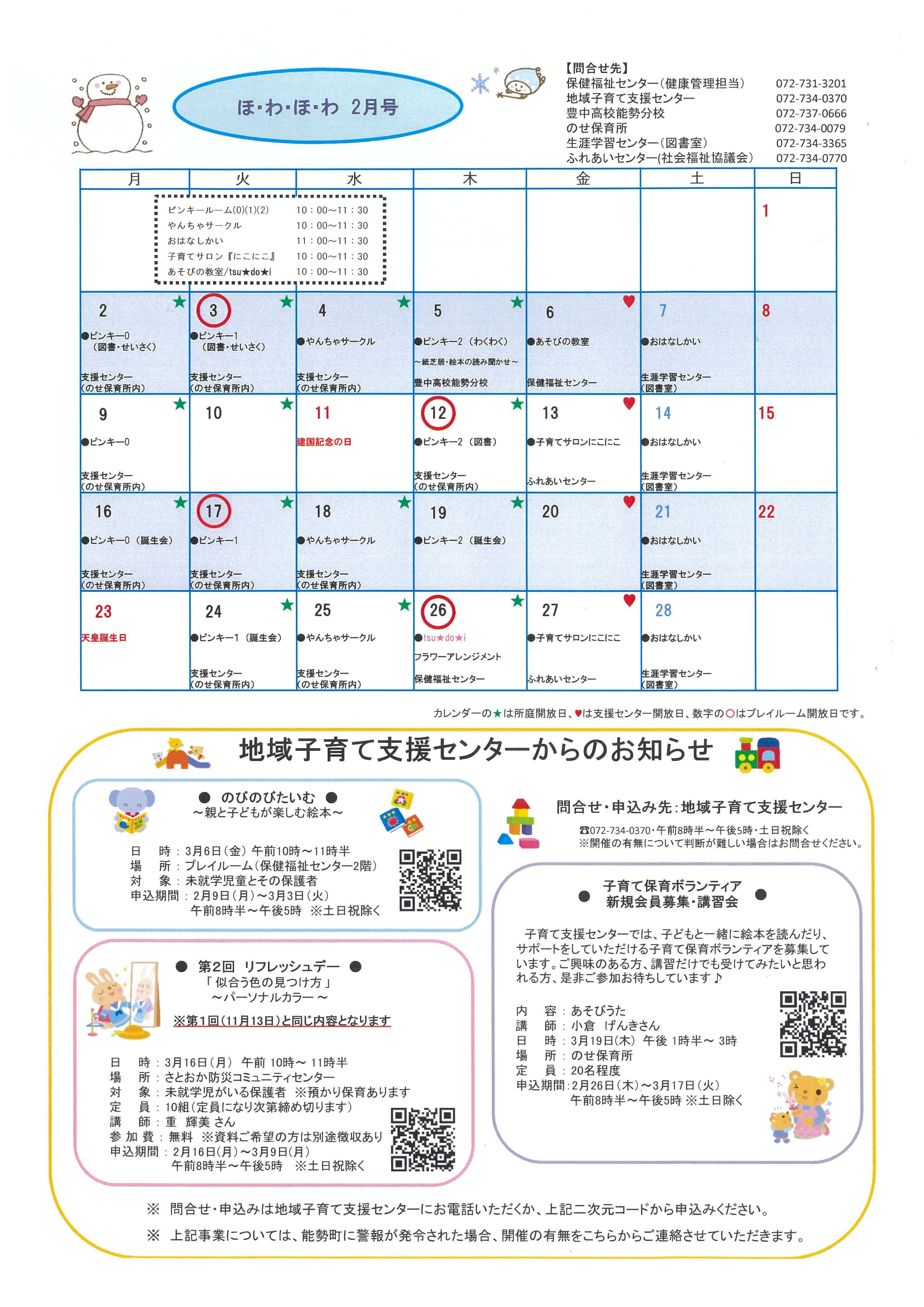 地域子育て支援センターだより『ほ・わ・ほ・わ』 令和8年2月号