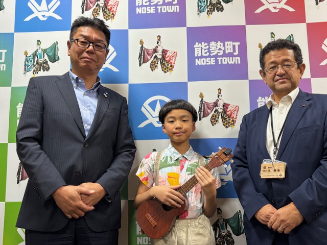 夕方には、「The Ukulele Contest4ALL International」コンテストにおいて全国2位に輝いたメンバーの1人である能勢ささゆり学園6年生の鍋師太郎さんが入賞の報告に来てくれました。ソプラノのウクレレをしなやかな手の動きで目の前で演奏してくれました。それにしても全国2位は素晴らしいですね。本当におめでとうございます。今後とも更なる活躍を期待しています。