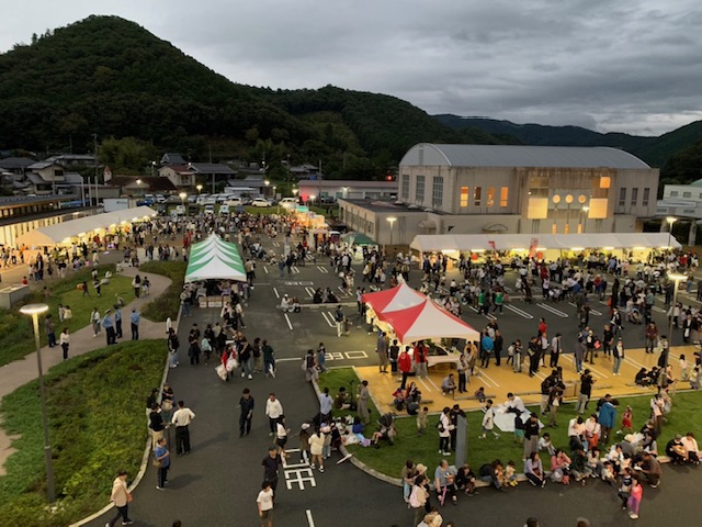 午後1時から実行委員長である能勢町観光協会長の開会宣言で始まり、私もご挨拶させていただきました。雨の中での開会式となりましたが、多くの関係者がそれぞれの持ち場で来場者を迎える姿を拝見し、何とか成功させたいという思いから挨拶の中では涙が出そうになりました。実行委員会はもとより、能勢町商工会青年部や能勢芸術文化祭実行委員会、加えて120件を超える協賛企業の皆様のおかげで開催することができました。