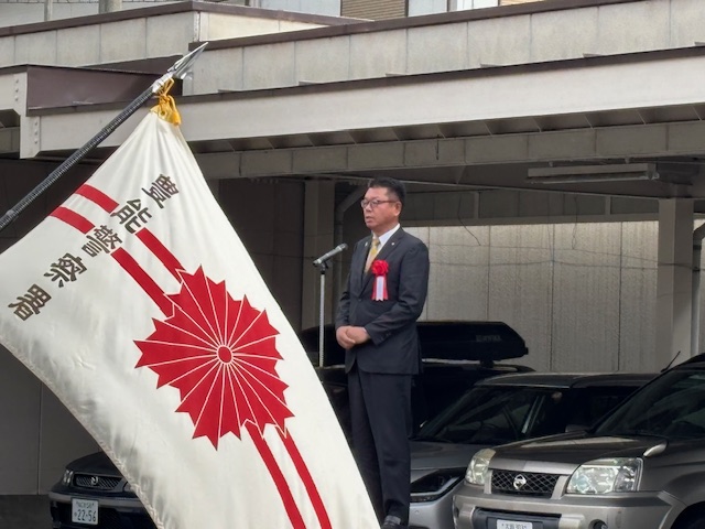 朝から豊能警察署で実施された歳末特別警戒部隊発隊式に出席し、激励のご挨拶をさせていただきました。年末に向け火災や盗難が増える懸念があるため、住民の安心安全のためご尽力をお願いしたい旨お話しました。防犯委員をはじめ多くの来賓の方々も、きびきびした署員の行動に安心感を持たれたことと思います。