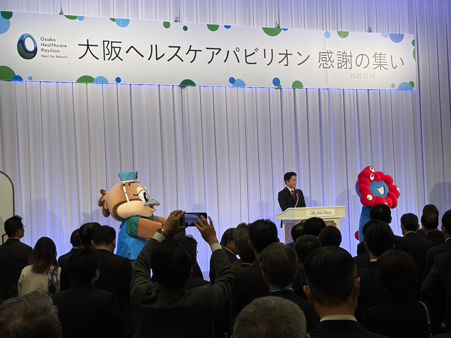 夕方から、大阪ヘルスパビリオンの閉館式が大阪市内のホテルで行われました。大阪府知事をはじめ経済界関係者や議員、首長の皆さんが参加されていました。