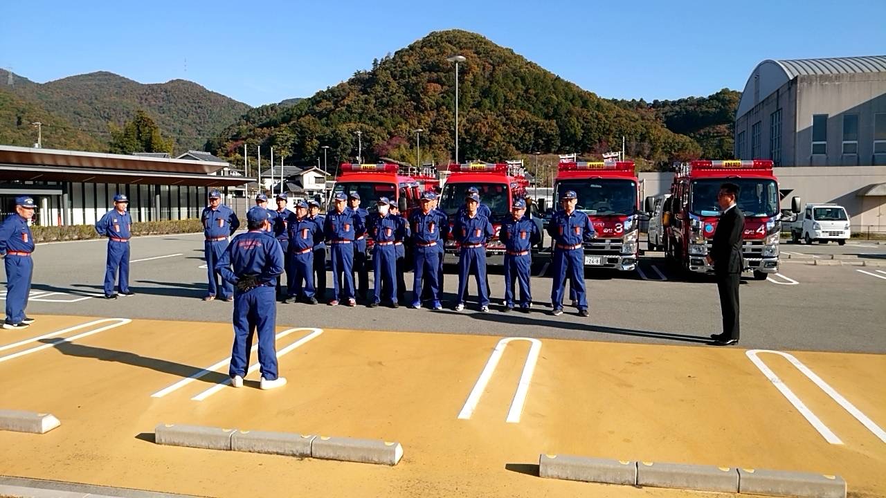 11月9日から15日まで秋季火災予防運動が実施されています。今日は能勢町消防団幹部による啓発活動が実施されるため激励に伺いました。これから火災が発生しやすい時期を迎えます。特に枯草等の焼却が原因の火災が多く発生していますので、十分お気をつけください