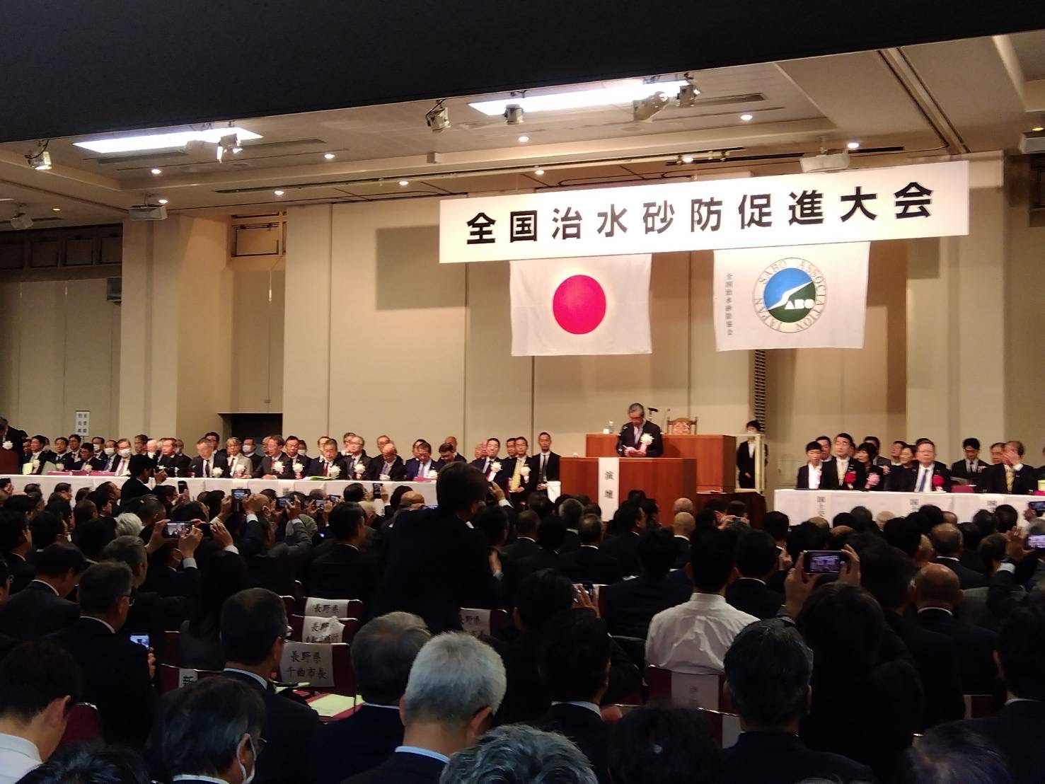 東京都千代田区にある砂防会館で開催された全国治水砂防促進大会に出席しました。大ホールには千人を超える首長等が出席されており、皆さんの砂防に対する思いを感じました。