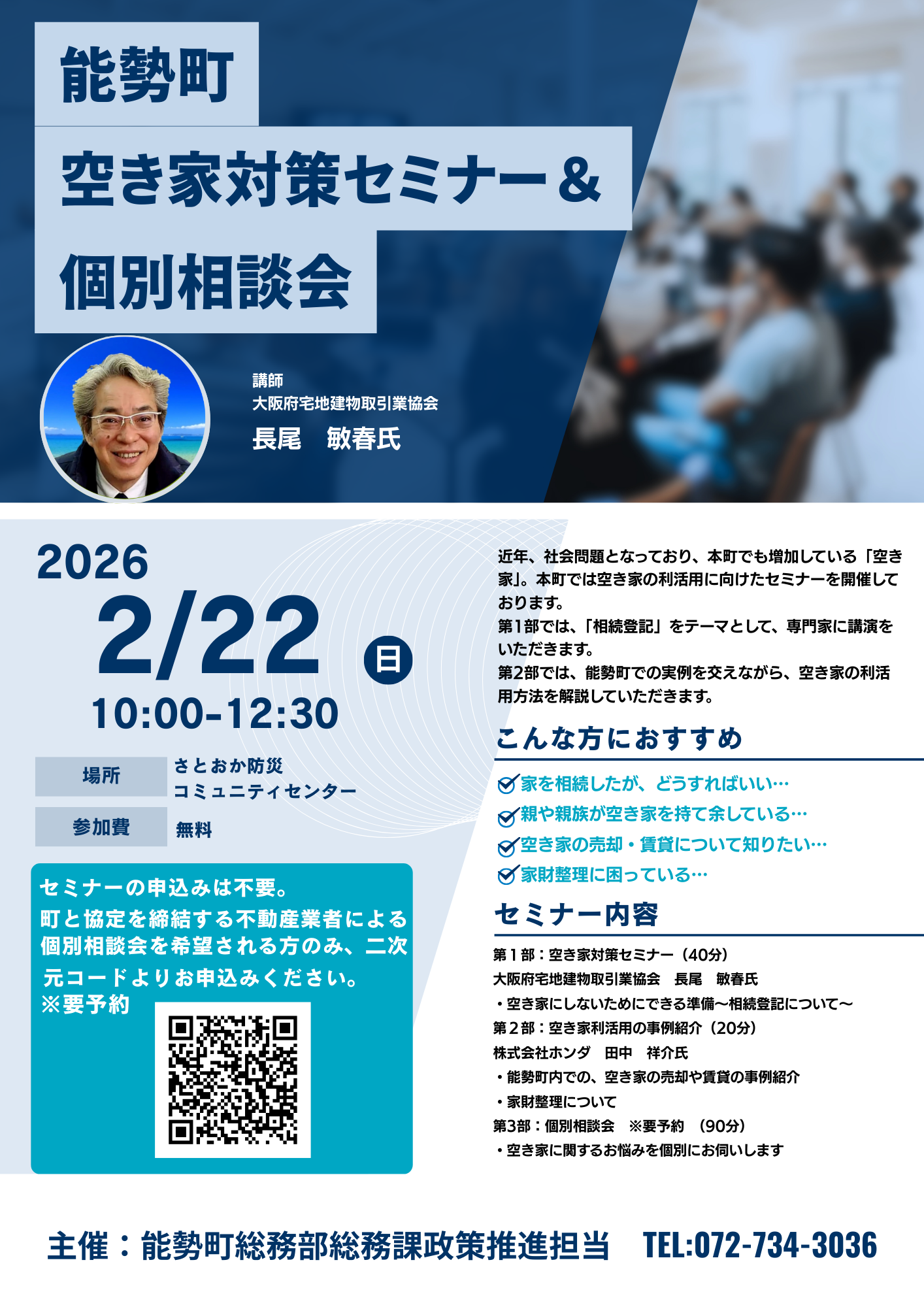 近年、社会問題となっており、本町でも増加している「空き家」。本町では空き家の利活用に向けたセミナーを開催しております。