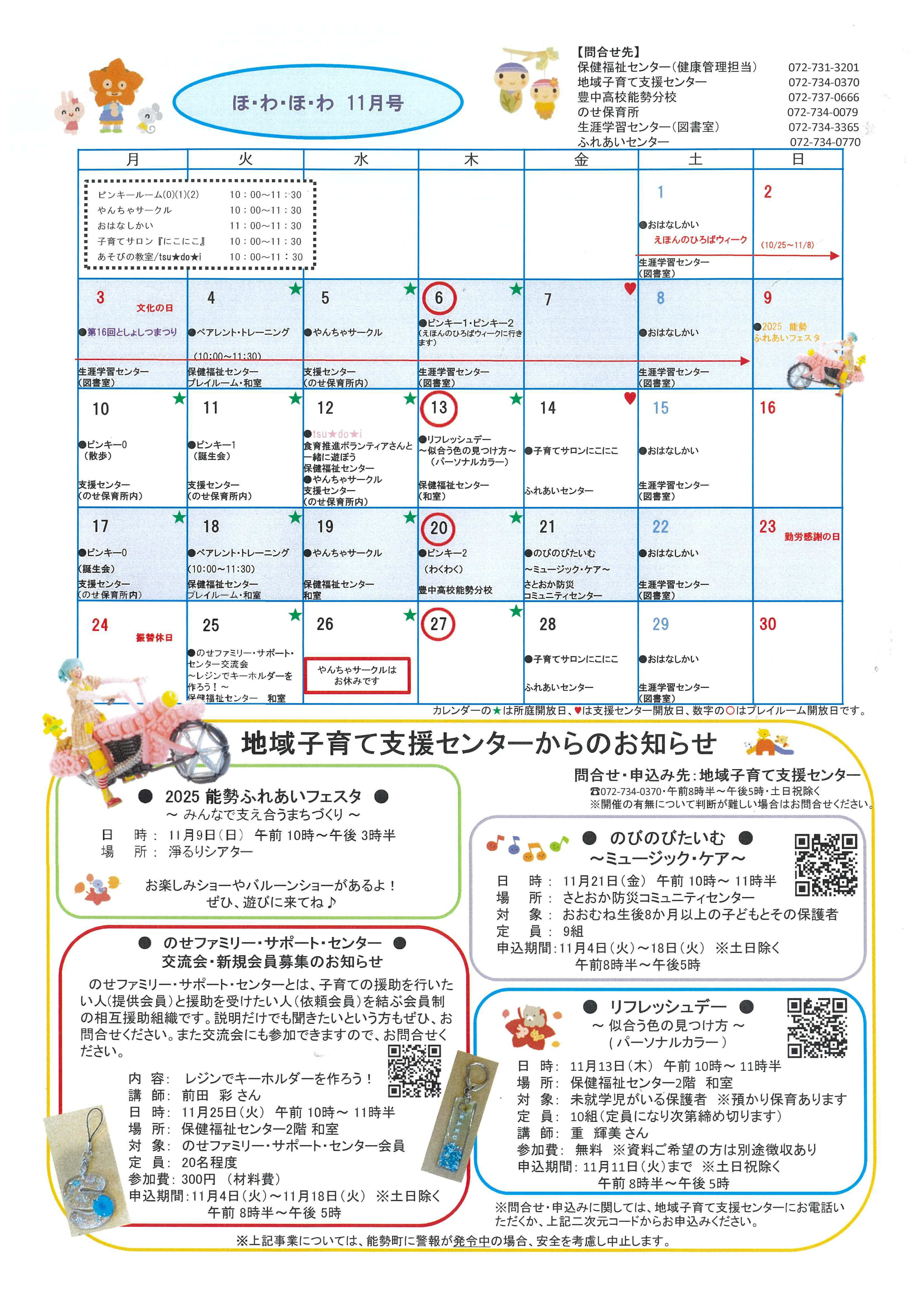 地域子育て支援センターだより『ほ・わ・ほ・わ』 令和7年11月号