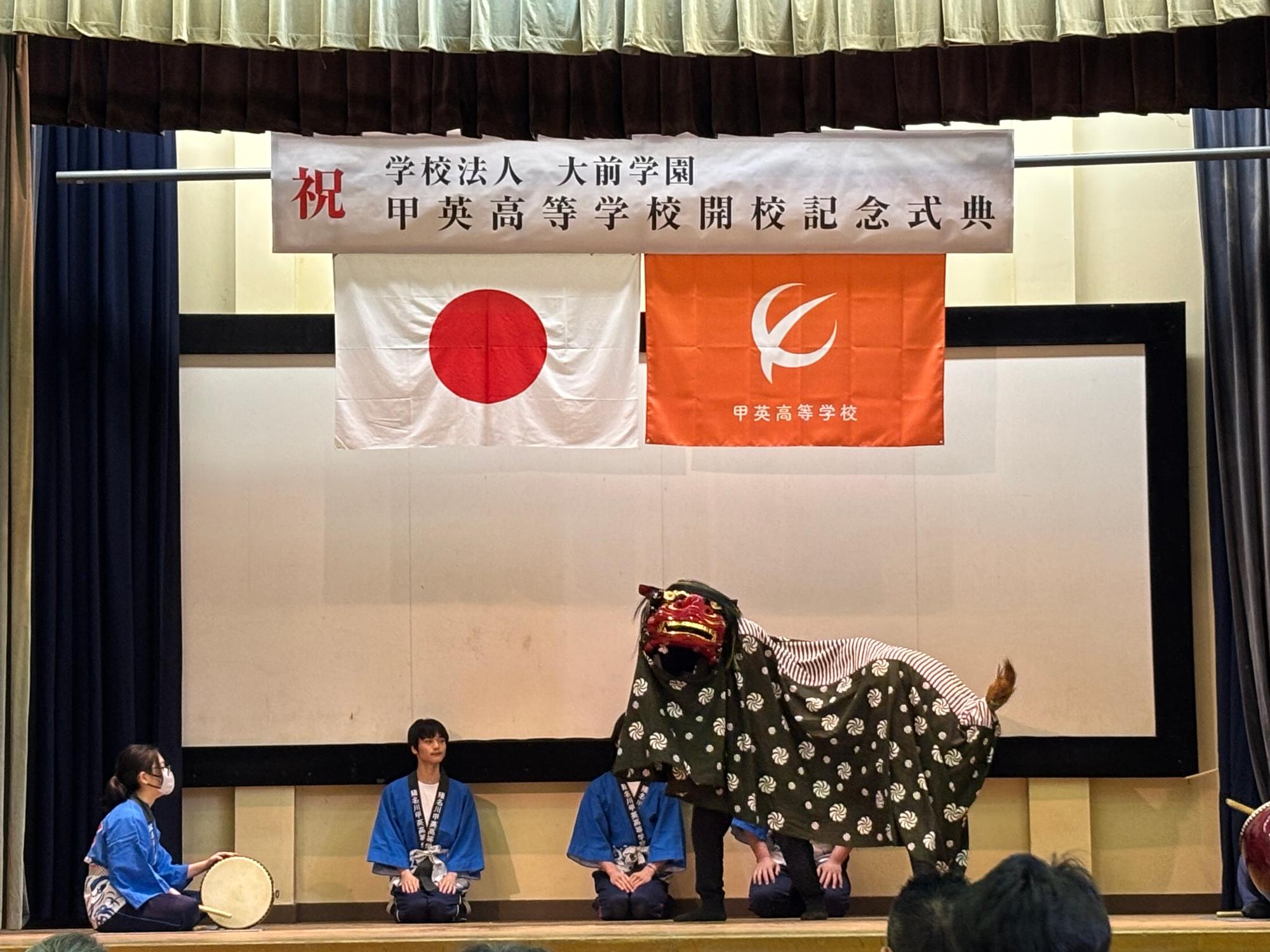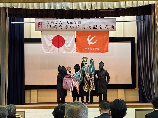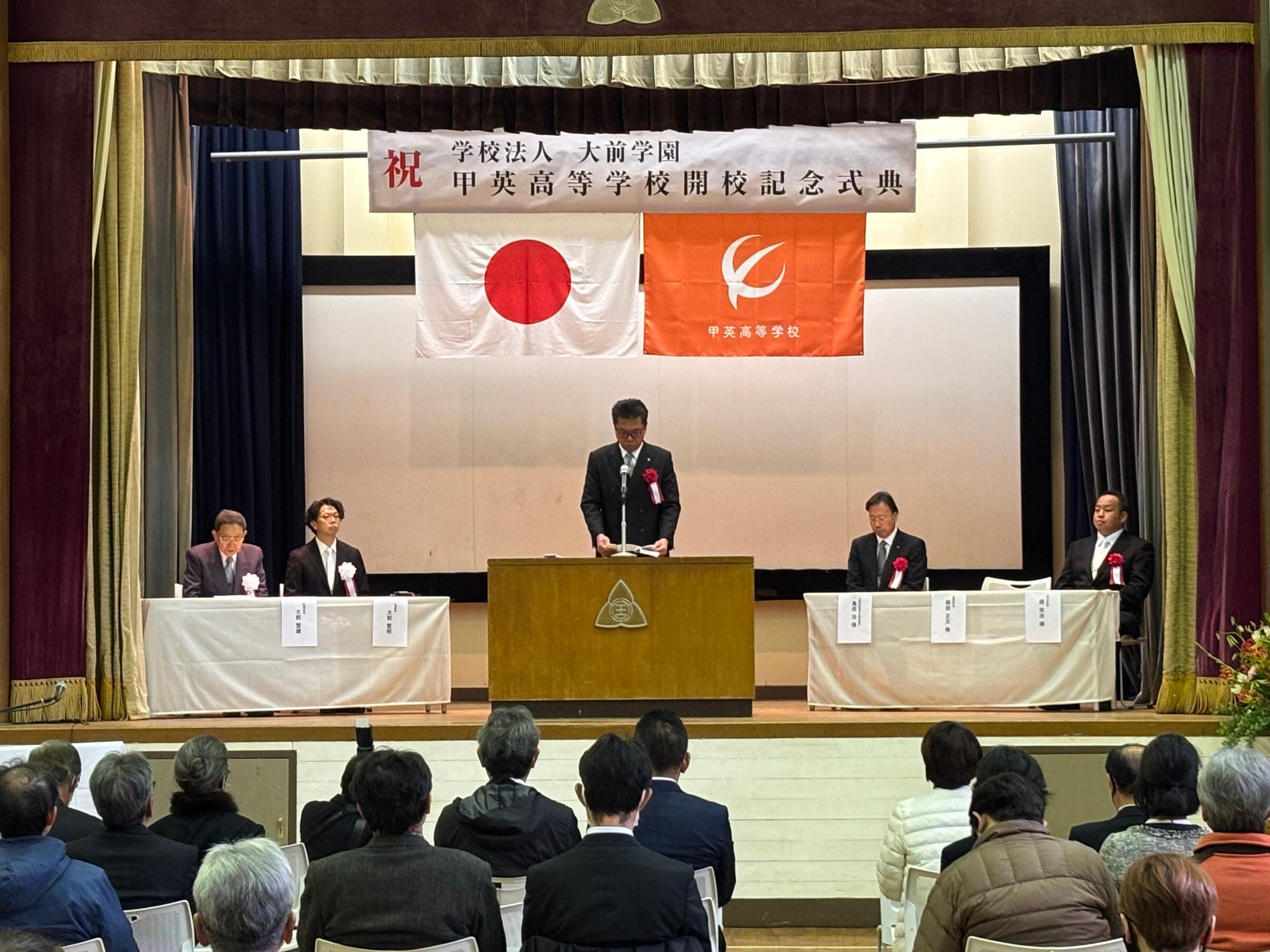 今日は、甲英高等学校能勢天王本校の開校記念式典が挙行されましたのでお祝いにお伺いしました。同校は、平成27年に閉校となった能勢町立天王小学校の校舎を活用されています。140年の歴史ある旧天王小学校が学校法人大前学園の手により新たな息吹を吹き込んでいただくことに感謝を申し上げるとともに、社会に貢献できる人材を育成されることを大いに期待しております。